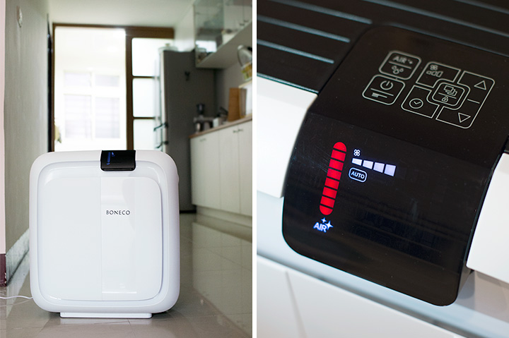 氣象預報空汙來襲的當日白天出門,便覺得空氣灰濛濛的一片且能見度極差,於市場採買一輪後回到家,眼睛即出現酸癢、喉嚨感到乾澀的不適感。到了晚上症狀加劇,趕緊啟動空氣清淨功能,一開始的確出現了一個紅色方格,顯示空氣真的受到影響。不過運作個一二分鐘紅色方格便消失了,清淨一段時間之後書房內空氣聞起來竟然有乾淨的感覺,特別是走出書房聞到外頭略帶刺鼻的氣味之後更覺得不一樣。就連對空氣品質不那麼敏感的室友都感受到書房內外的氣味有極大的差異,當然我的不適感也逐漸舒緩。於氣象預報顯示空氣汙染嚴重的那幾天,因為有 BONECO H680 的認真服役,我那敏感的氣管才沒有受到波及,得以安心在書房內好好工作。