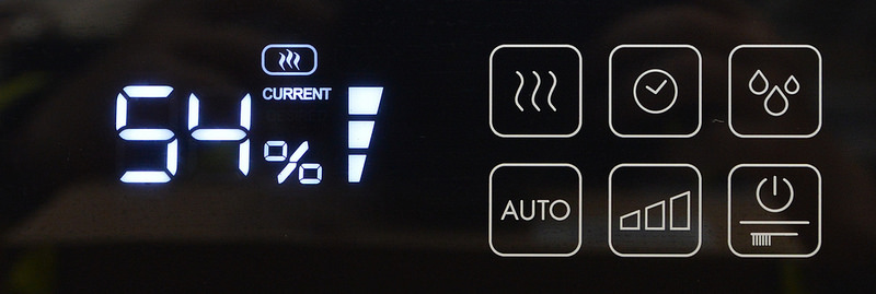如果是剛開機的狀態下,室內濕度54%,機器應該是不會運作,因為出廠設定Auto的濕度設定是50%三格是最大出水量,柚子建議一至兩格即可,除非很乾或是家裡坪數很大。