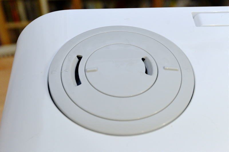 幾個注意事項:BONECO U700每小時可以釋放半公升的水到空氣中,所以排氣量真的蠻大的,開最大的三段就會看到源源不絕的水霧一直冒出來,放地上沒多久可能機器的周圍就會開始濕濕的喔!所以放置位置很重要,不要直接放地上,木頭地板或是地毯上,除非太乾燥或是空間坪數較大才需要開到。