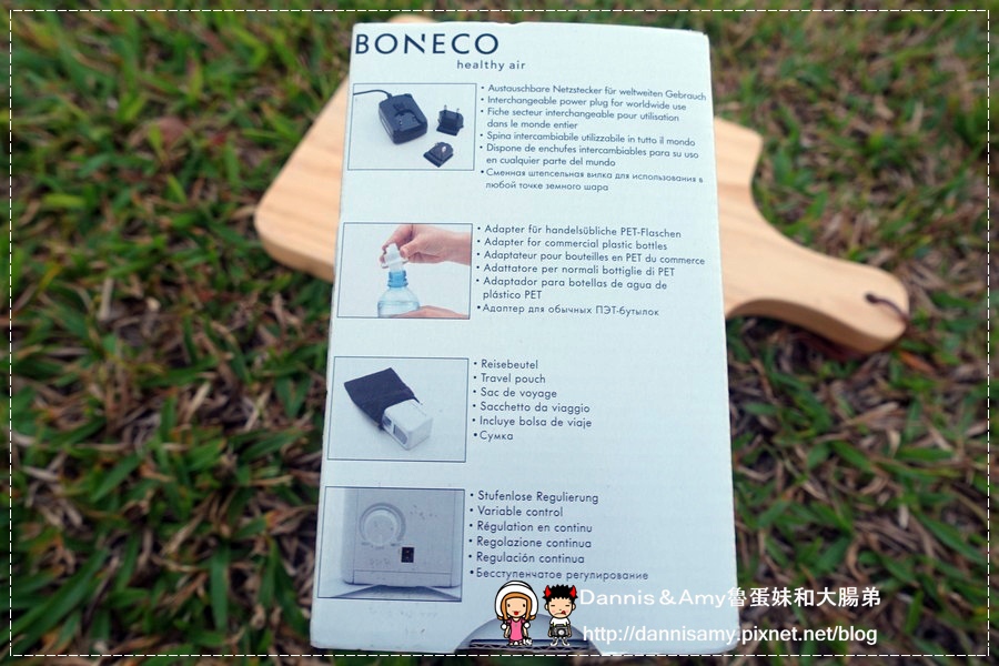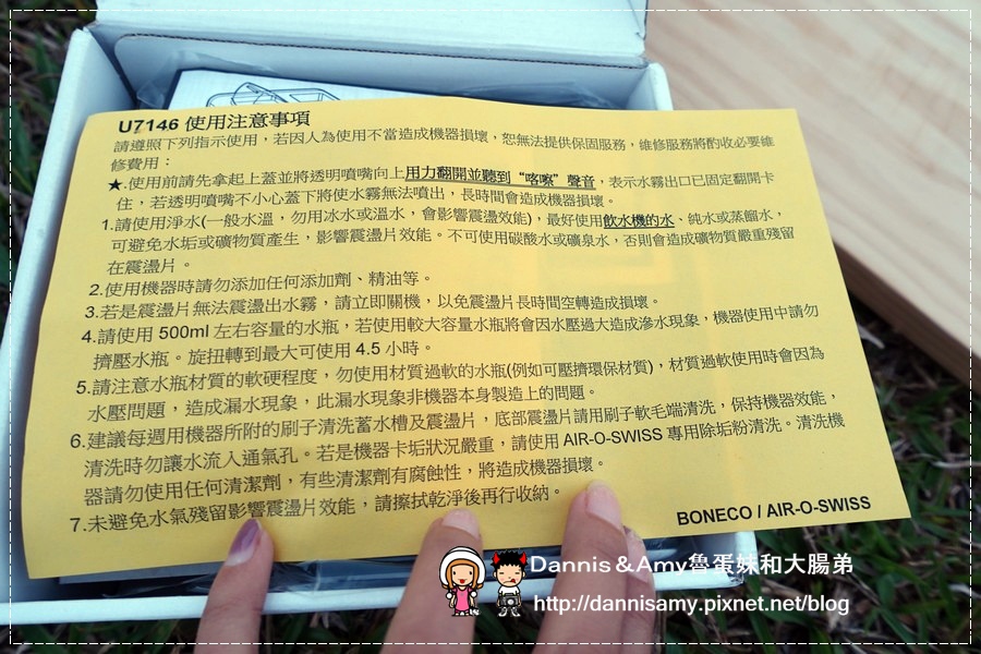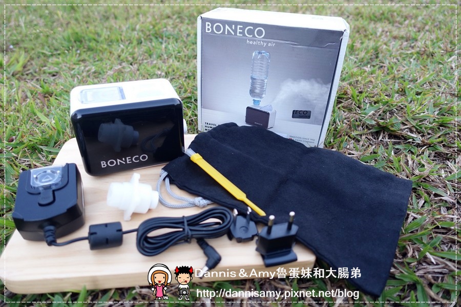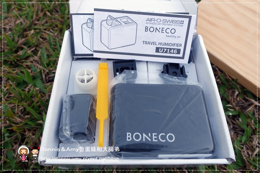 ↑BONECO攜帶型超音波空氣加濕器是瑞士製造的品牌喔!看起來非常地小吧!Amy是第一次看到這種隨身型的加濕器說,來看看它的配件有什麼吧!