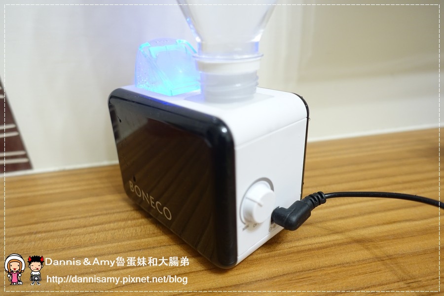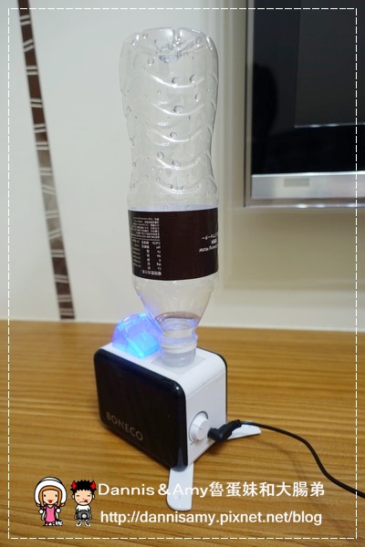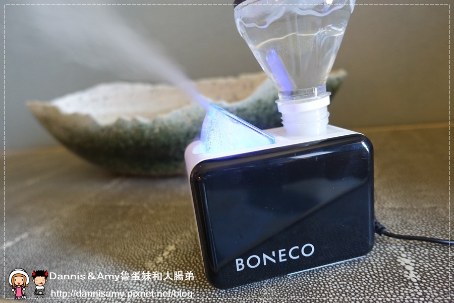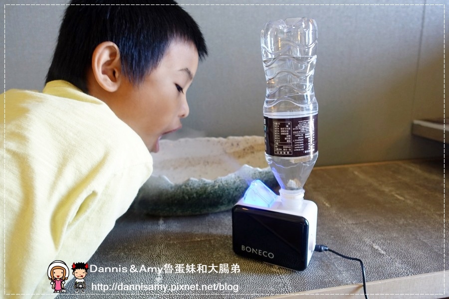 ↑一般使用電器最麻煩的就是有專用的容器什麼的,BONECO特別設計了一個寶特瓶卡夾式轉接器,只要用礦泉水瓶都可以當成蓄水容器使用,不過建議使用過濾水、純水、淨水就好喔!一般的自來水或是含有其他礦物雜質的礦泉水比較不適合,另外也不要添加精油在裏頭,不然怕久了裏頭的震盪片會壞掉。