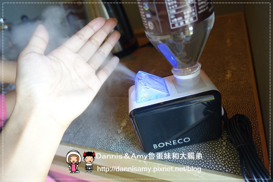 ↑Amy都是把BONECO攜帶型超音波空氣加濕機放在桌上或是矮櫃上使用,樣水霧分子才能在落地前被空氣吸收,不建議直接放在地毯或是木地板上喔!因為可能會有受潮的問題。
