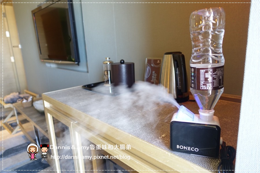 至於蓄水容器Amy是直接拿飯店送的瓶裝水來使用,只要把寶特瓶卡夾式轉接器直接裝在水瓶上就可以了,因為裏頭有滾珠設計只要水不會亂流!