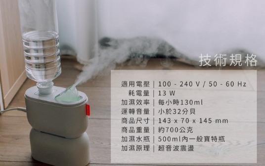 至於要如何使用呢?方法很簡單,只要找個插座、約500ml的保特瓶加入純水、蒸餾水即可插電使用囉!(不建議使用礦泉水或是含精油的水源)