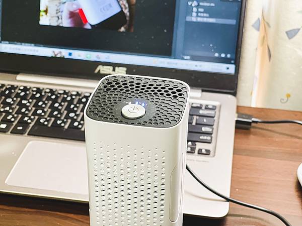 充電孔在後面,是USB供電、使用USB-C充電線很方便,旅行或個人使用都很便利。