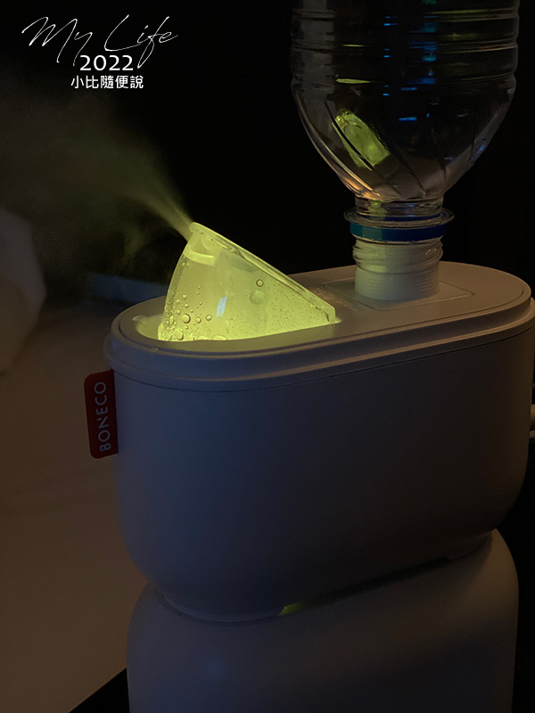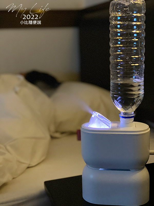 將水箱裝上後,隨行加濕機就可以開始運轉了